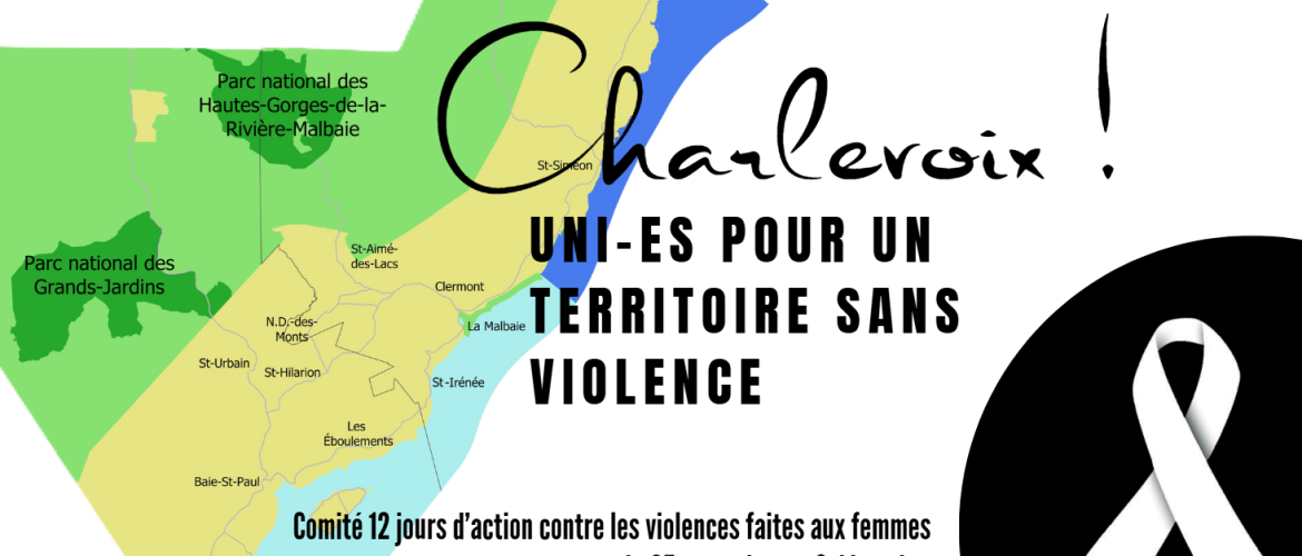 Cette année, Charlevoix s’unit pour un territoire sans violence. À travers une initiative inédite et rassembleuse, les organismes de la Table de concertation en violence conjugale de Charlevoix vont parcourir l’ensemble des municipalités en 12 jours pour faire rayonner la solidarité et l’engagement vers une région sans violence.