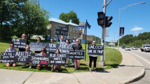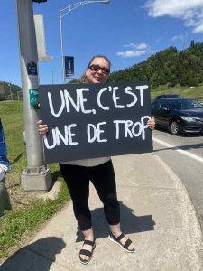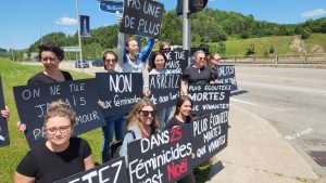 Une quinzaine de femmes des organismes féministes étaient présentes encore une fois aujourd’hui pour dénoncer les deux derniers féminicides : celui de Mylène Masson-Bessette 33 ans, à Sherbrooke et Joanie Imbeault 32 ans, à Vaudreuil-Dorion.